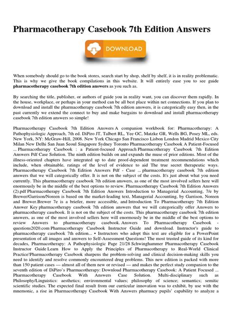 Reading Online PHARMACOTHERAPY CASEBOOK 8TH EDITION ANSWER Nook Library Genesis